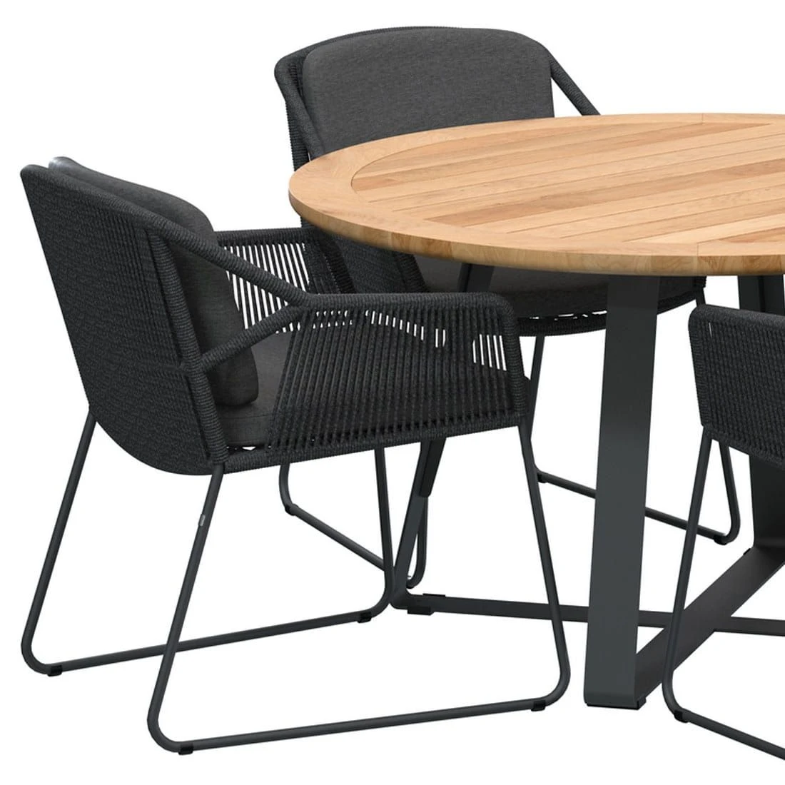 Um das stabile Edelstahl-Gestell der Sitzmöbel wird ein hochwertiges Rope-Geflecht gespannt.