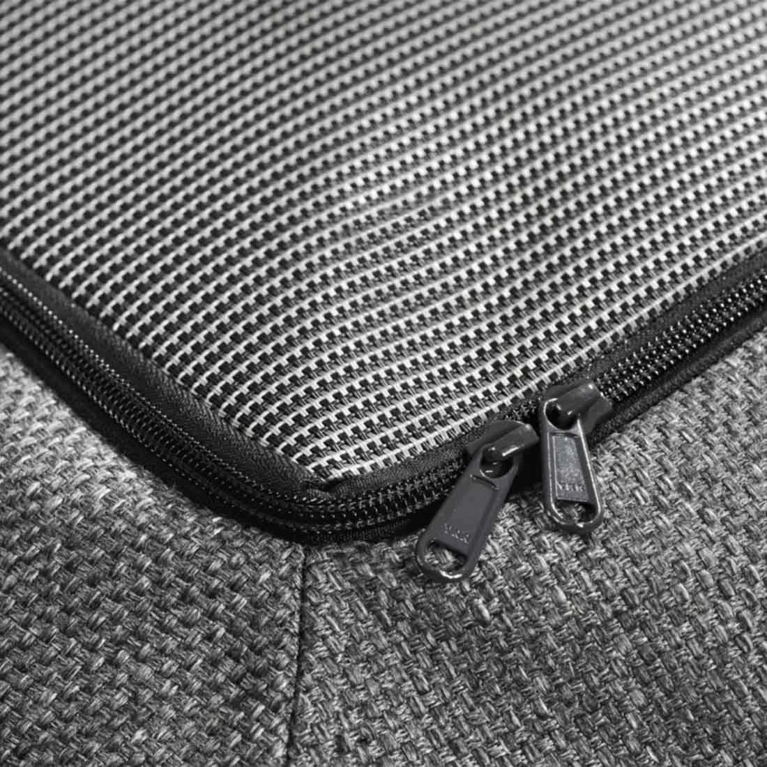 Die Sitz- bzw. Rückenfläche ist aus hochwertiger Kunstfaser gefertigt. Dadurch ist die Außenhülle wasserundurchlässig, sodass Sie das Eck-/Endmodul auch bei länger andauernder Feuchtigkeit draußen belassen können.