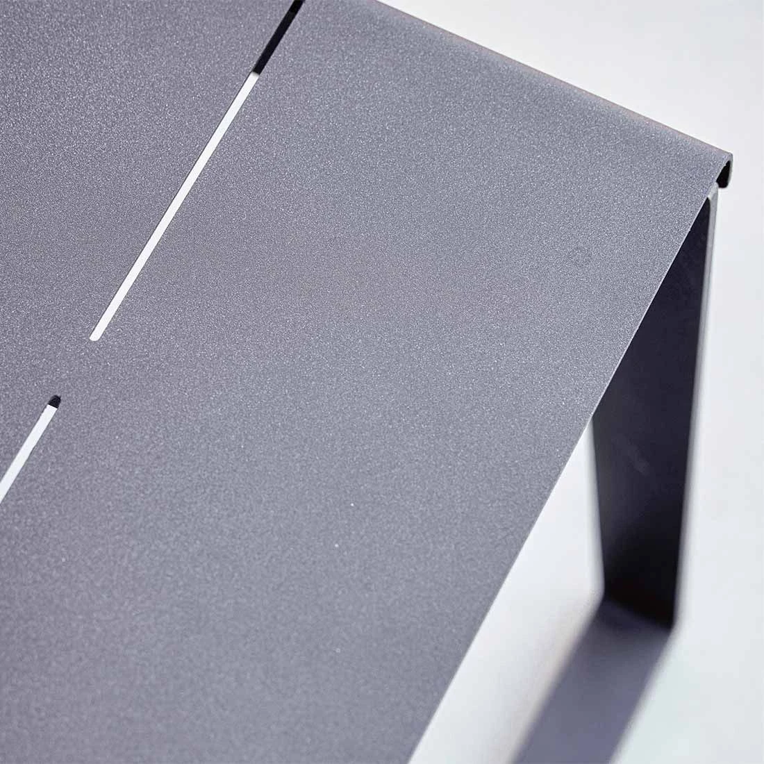 Die Gartenbank begeistert damit, dass das Gestell und die Sitzfläche aus Aluminium (pulverbeschichtet) gefertigt sind. Dies erzeugt nicht nur ein elegantes, sondern auch einheitliches Bild des attraktiven Möbels. Für ein perfekt stimmiges Gesamtbild sorgt die einheitliche Farbgebung in stilvollem Lava Grey.