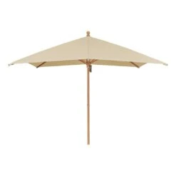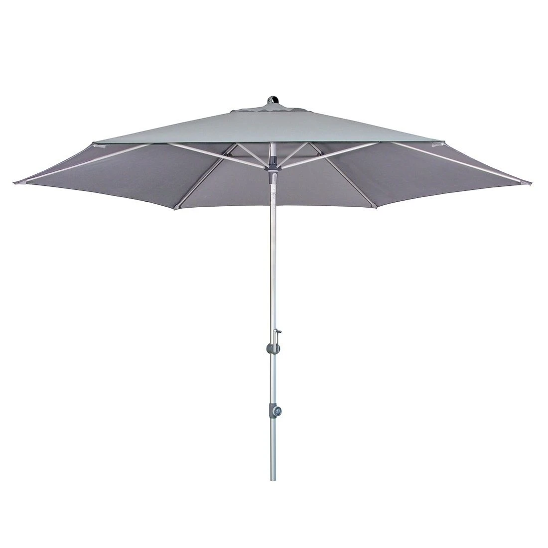Das Schirmgestell besteht aus leichtem, aber dennoch sehr robustem Aluminium. Massive Streben halten das Schirmdach aus hochwertigem Polyester (UV 80). Der Bezugsstoff ist wasserabweisend, die Bedienung erfolgt mittels einer leichtgängigen Kurbel.