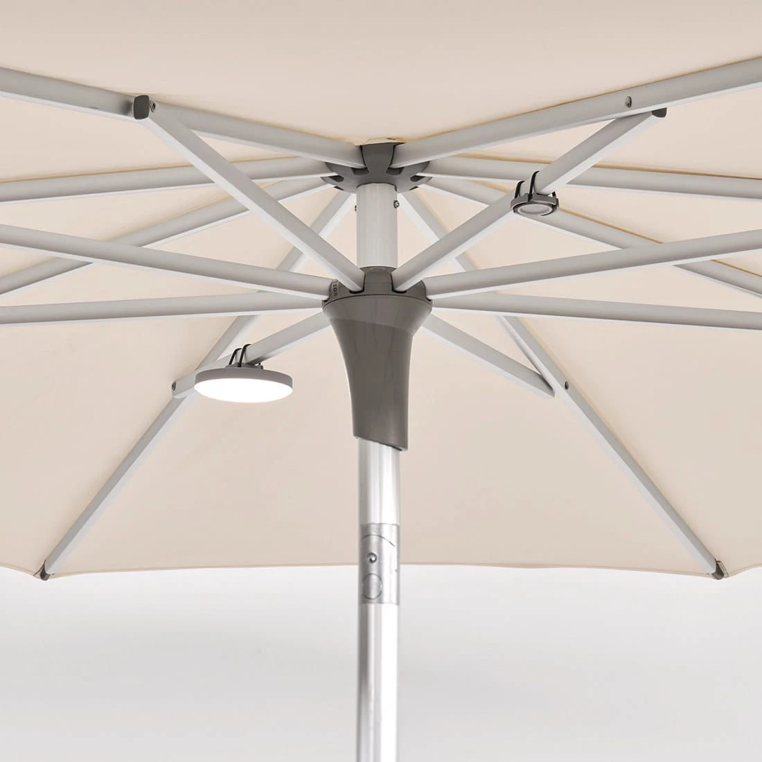 Mit dem Glatz OSYRION Spot Akku-Licht 2er-Set kreieren Sie unter Ihrem Schirm bis zu 10 Stunden eine gemütliche und einladende Atmosphäre. Dabei lassen sich die Spots mittels mitgelieferten Gummibändern (3 Größen) an den Dachstreben einfach befestigen. Das Einstellen der 5 verschiedenen Helligkeitsstufen erfolgt mittels Fernbedienung.