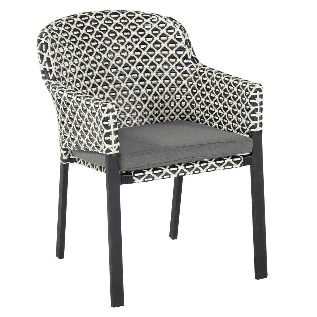 Für den Korpus und die Sitzfläche kommt Rope zum Einsatz. Das Gestell besteht aus pflegeleichtem und wetterfestem Aluminium. Für eine attraktive Optik ist das Gestell im Farbton Schwarz gehalten. Damit der Gartensessel optisch ansprechend ist, sind der Korpus und die Sitzfläche im Farbton Schwarz-Weiß gehalten.