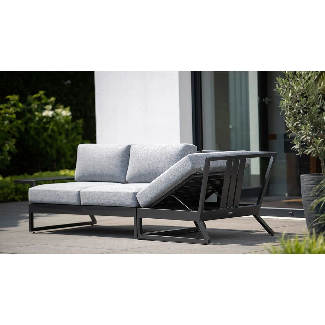 Als Material des Gestells hat der Hersteller wertiges Aluminium gewählt. Optisch begeistert das Gestell in der Farbe Anthrazit. Die Sitz- und Rückenfläche ist aus dem Marken-Outdoorstoff Olefin gefertigt. Das Material verbindet eine angenehme Stoffoberfläche mit hoher Witterungsbeständigkeit. Denn sowohl Sonne als auch Regen können dem robusten Outdoor-Stoff kaum etwas anhaben.