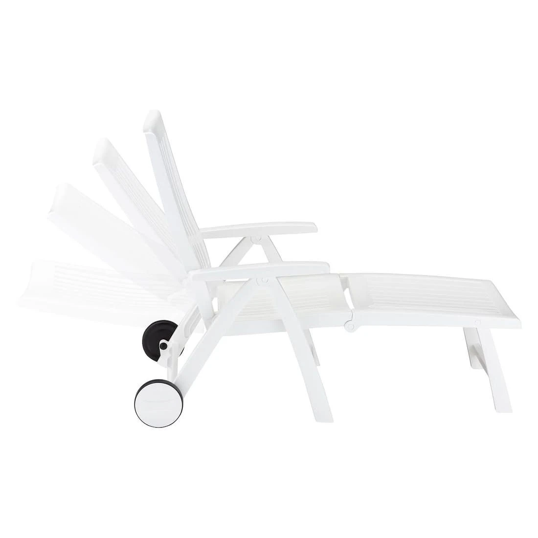 Die Gartenliege besteht vollständig aus Kunststoff. Dies erzeugt nicht nur ein geschmackvolles, sondern auch einheitliches Bild des attraktiven Möbels. Für ein perfekt stimmiges Gesamtbild sorgt die einheitliche Farbgebung in stilvollem Weiß.
