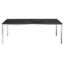 Der Balkontisch Balcony ist einheitlich gestaltet: Sowohl das Gestell als auch die Tischplatte sind aus Stahl gefertigt. Farblich sind Gestell und Tischplatte einheitlich gestaltet und begeistern in Titane. Klassisch aus vier Tischbeinen besteht das Gestell des Tisches. Die Form des Balkontisches ist klassisch rechteckig gehalten.