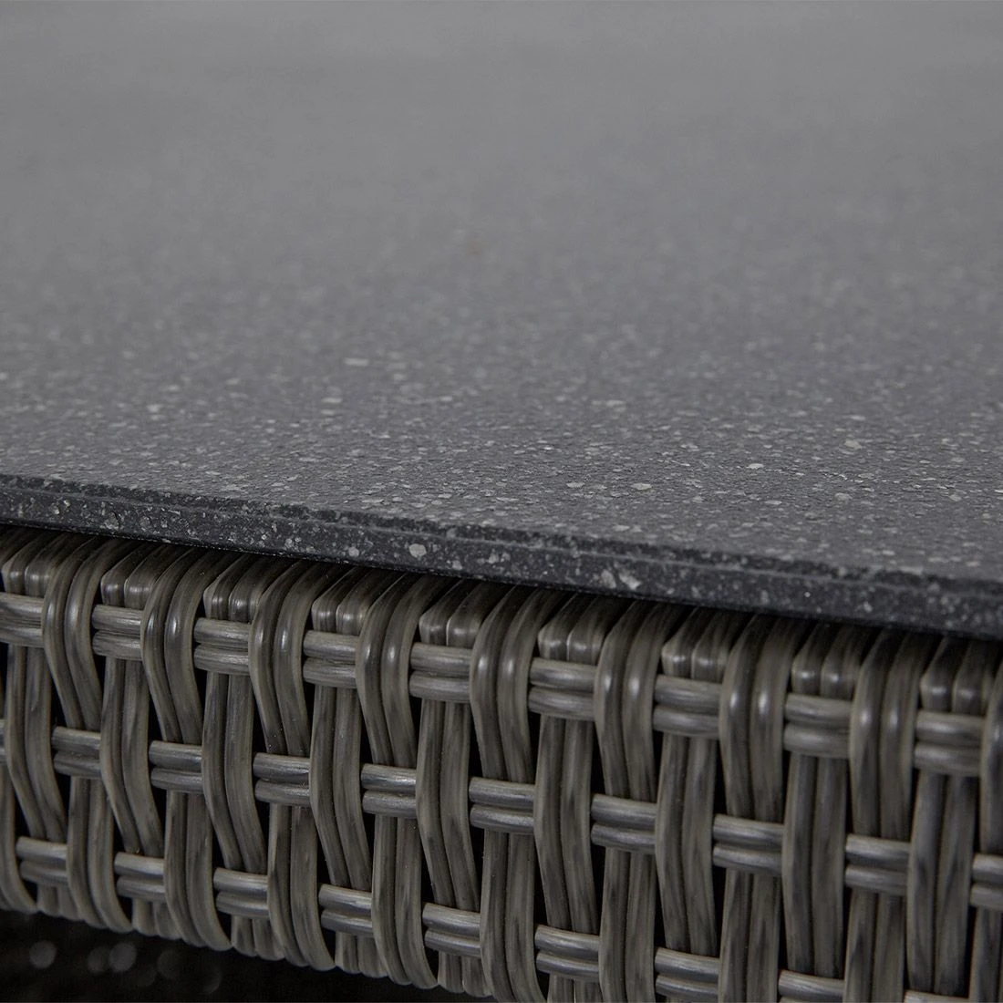 Das Gestell des attraktiven Tisches ist aus Aluminium gefertigt. Farblich ist das Gestell in Anthrazit gehalten. Die Tischplatte ist aus schönem Keramik-Glas gefertigt. Im Gegensatz zu vielen anderen Tischplattenmaterialien sind solche Platten äußerst kälte- und hitzebeständig und zählen somit zu den robustesten Tischplatten auf dem Markt. Farblich ist die Platte in Schwarz gehalten. Das klassische Vierfuß-Gestell garantiert Ihnen maximale Beinfreiheit. Die Form des Gartentisches ist klassisch rechteckig gehalten.