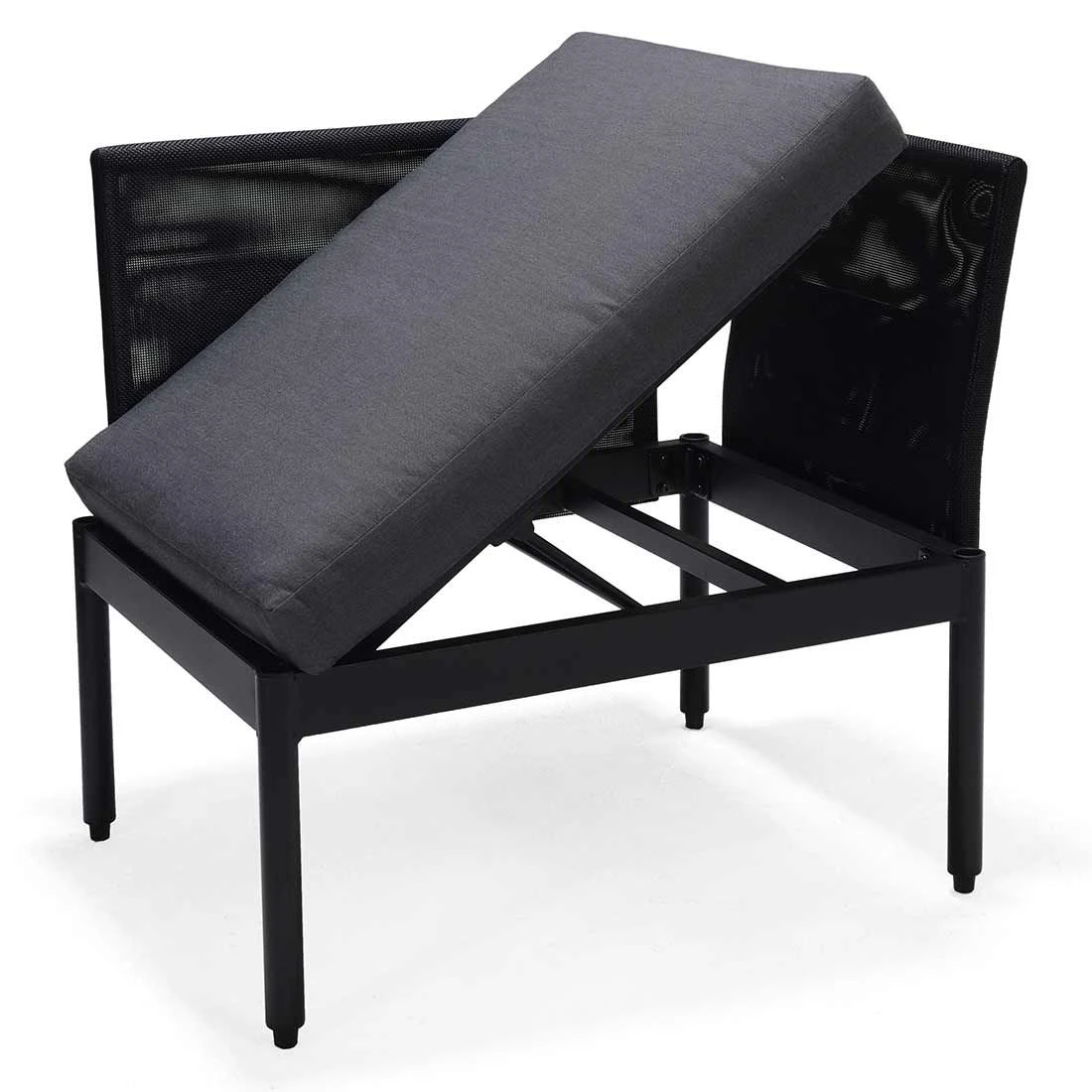 Das Gestell wird aus Aluminium in der Farbe Schwarz gefertigt.