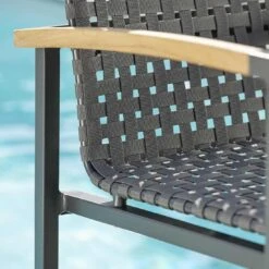Kettler Ocean Skid Modular Endteil Aluminium/Olefin Mit Teak-Leiste Anthrazit/Hellgrau Meliert