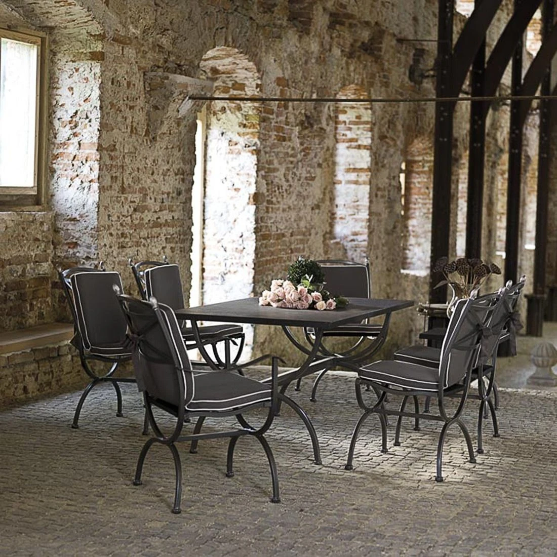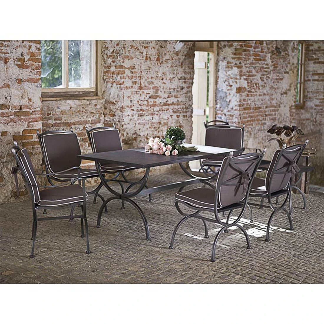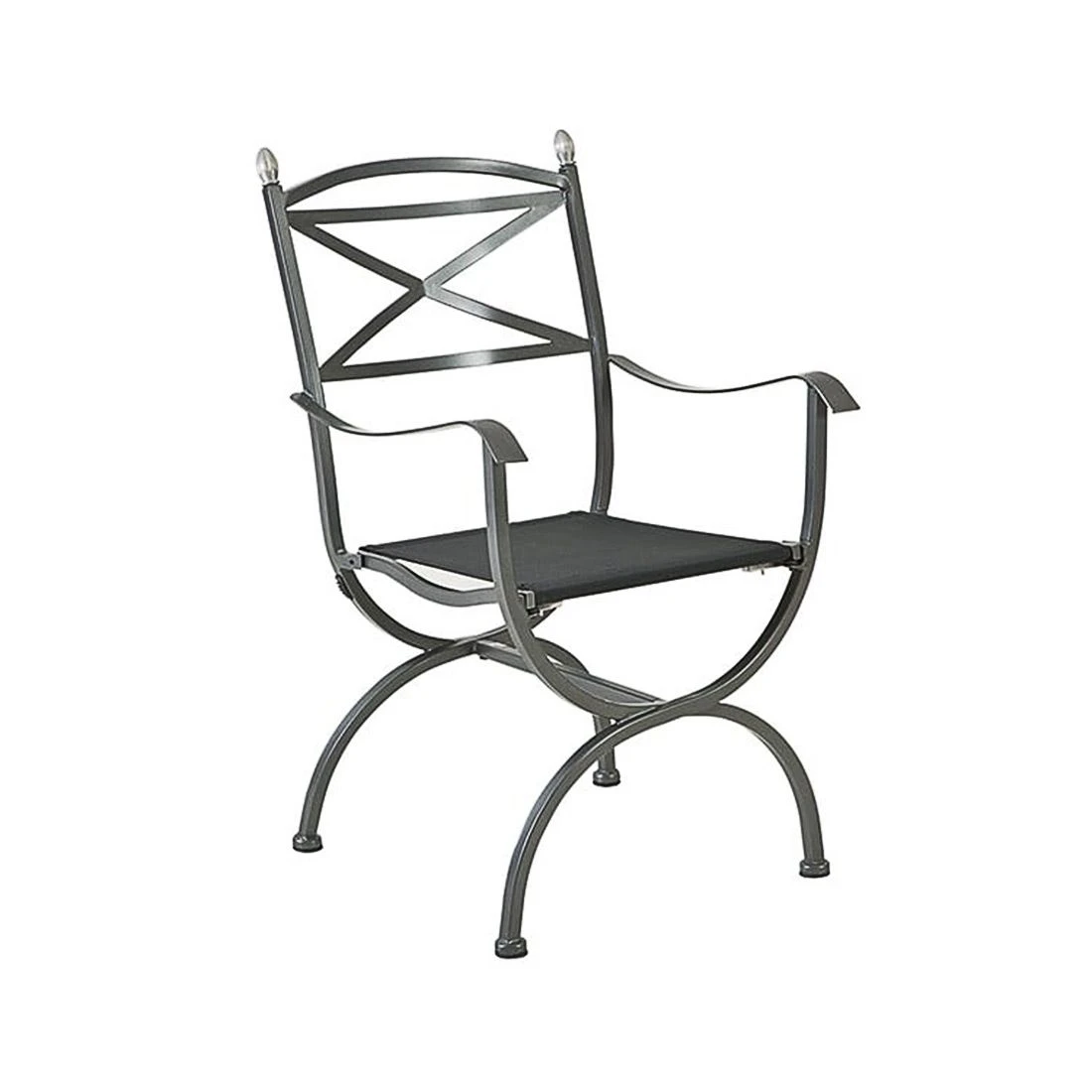 Zum geschmackvollen Hingucker wird der Gartensessel dank des Gestells aus hochwertigem Schmiedeeisen. Dieses verleiht dem Modell Medici ein verspieltes Erscheinungsbild. Für eine attraktive Optik ist das Gestell im Farbton Graphit gehalten. Für die Bespannung der Sitzfläche verlässt sich der Hersteller auf hochwertiges Textilene. Es zeichnet sich durch eine hohe Robustheit gegenüber Hitze und Frost aus und ist leicht zu reinigen. Damit der Gartensessel optisch ansprechend ist, sind die Sitzfläche und der Bezug im Farbton Schwarz gehalten.