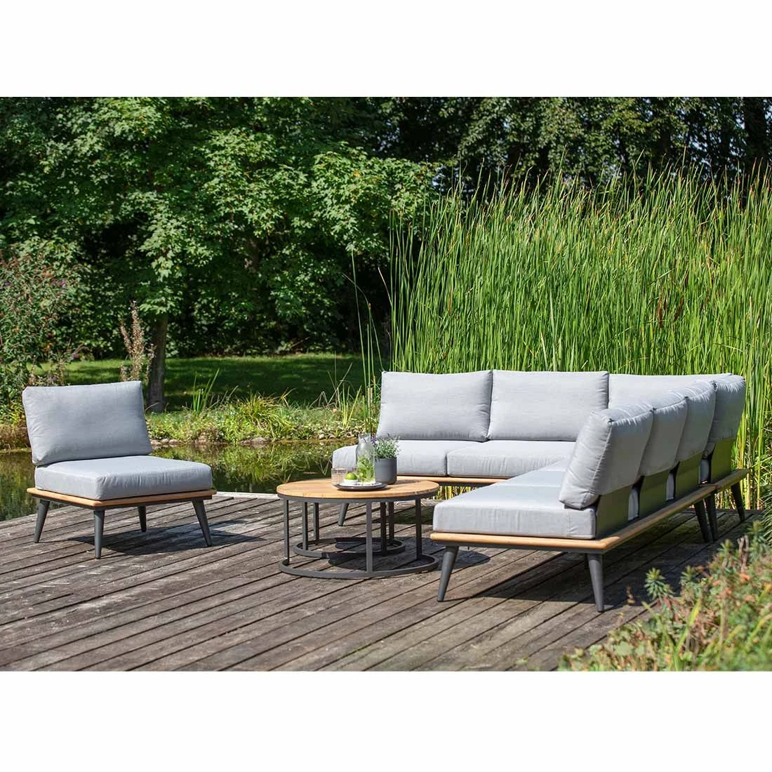 Verlagern Sie das Wohnzimmer nach draußen. Denn mit der gemütlichen Ecklounge Serra von Niehoff kreieren Sie sich eine gemütliche Sitzecke, die zum Kuscheln und Feiern einlädt. Die Ecklounge ist in L-Form mit unterschiedlich langen Schenkeln gestaltet.