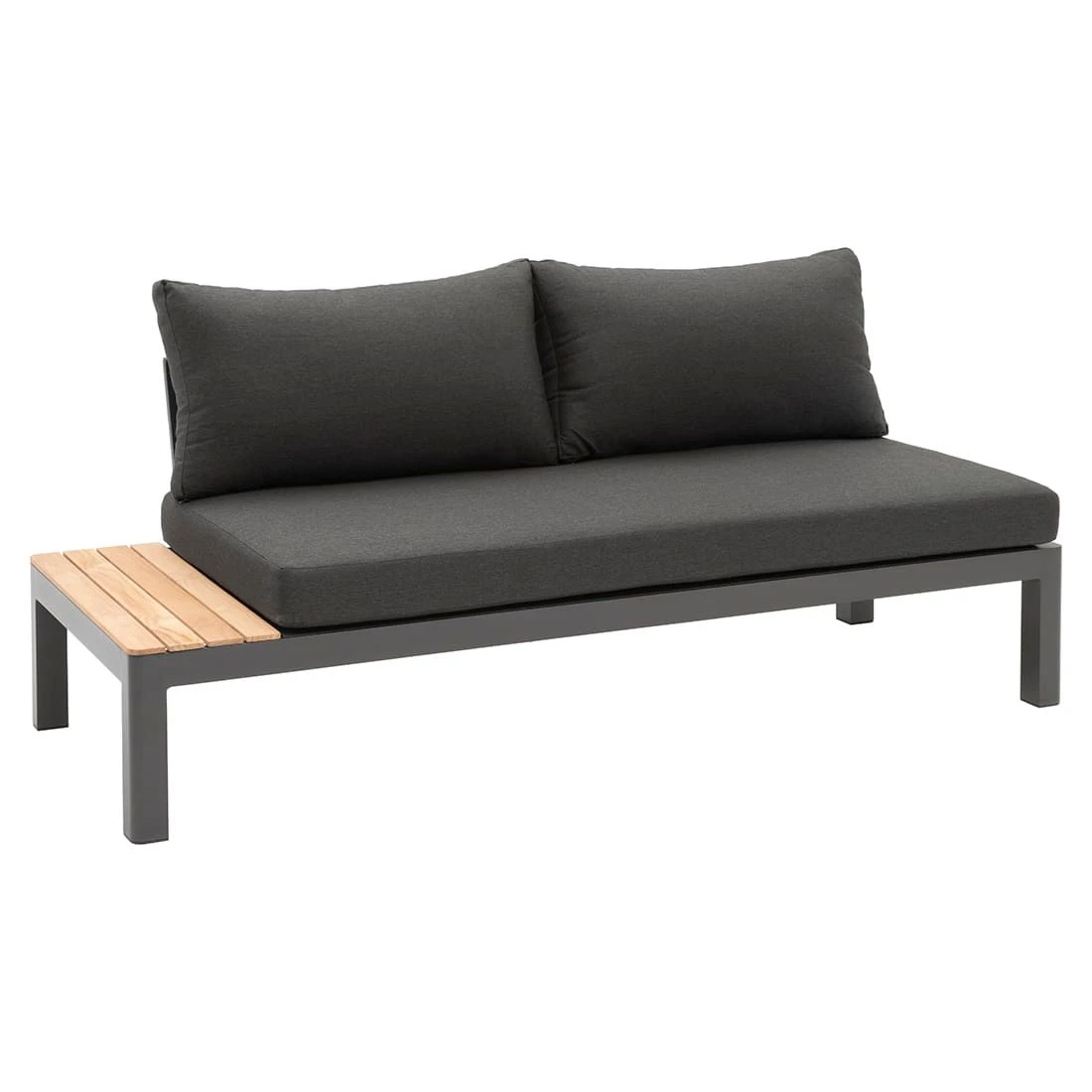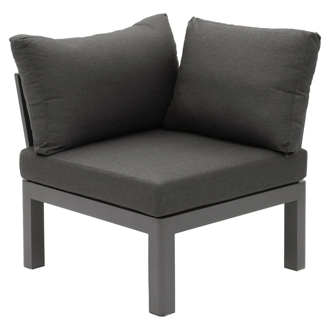 Damit die Ecklounge optisch ansprechend ist, sind das Gestell und der Bezug im Farbton Anthrazit gehalten. Das Gestell besteht aus Aluminium. Ein hochwertiges Material wird auch für die Sitzfläche verwendet: In diesem Fall kam der wasserabweisende und UV-beständige Markenstoff Sunbrella zum Einsatz. Auch schmutzabweisend und schimmelresistent – ideale Voraussetzungen für eine gepolsterte Lounge im Freien! Die Tischplatte ist aus wunderschönem Keramik gefertigt. Im Gegensatz zu vielen anderen Tischplattenmaterialien sind solche Platten äußerst kälte- und hitzebeständig und zählen somit zu den robustesten Tischplatten auf dem Markt. Farblich überzeugt die Tischplatte in Concrete Coal.