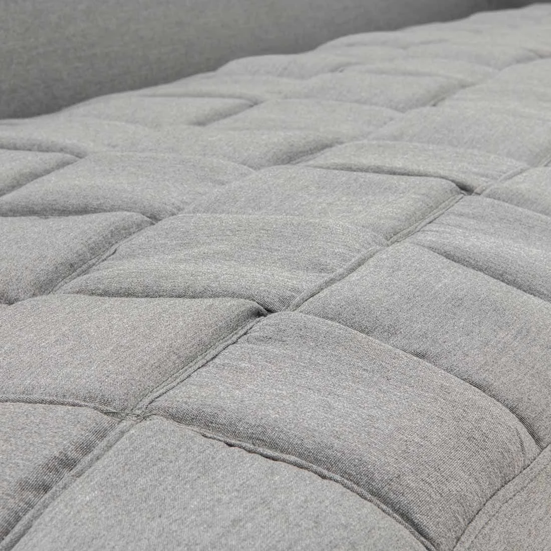 Damit die Ecklounge optisch ansprechend ist, sind die Tischplatte und die Sitzfläche im Farbton Natur gehalten. Das Gestell ist aus Aluminium gefertigt. Optisch begeistert das Gestell in der Farbe Schwarz. Als Bezug wird ein hochwertiger Stoff verwendet. In diesem Fall kommt der wasserabweisende und UV-beständige Markenstoff Sunbrella zum Einsatz. Er ist zudem auch schmutzabweisend und schimmelresistent – ideale Voraussetzungen für eine gepolsterte Lounge im Freien. Die Farbe des Bezugs ist Flanelle. Teakholz ist enorm widerstandsfähig gegen Witterungseinflüsse wie Temperaturschwankungen, Nässe und Trockenheit. Kein Wunder, dass das hochwertige Hartholz als Material für die Tischplatte gewählt wurde.