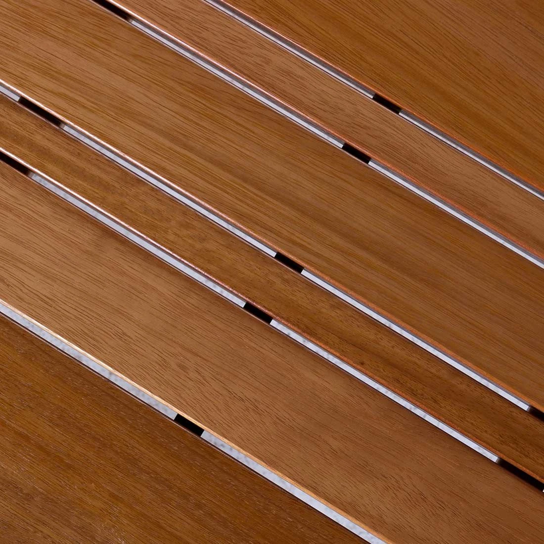 Die Tischplatte ist aus natürlichem Teakholz gefertigt. Durch den sehr hohen natürlichen Ölanteil ist sie bereits von Haus aus sehr gut vor Witterungseinflüssen geschützt.