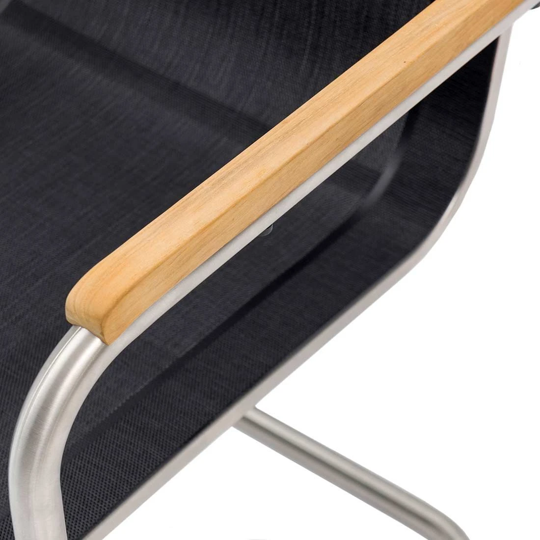 Ein weiterer Pluspunkt des Freischwingers ist die Bespannung mit Textilene. Dieser Bezugsstoff überzeugt durch eine hohe Robustheit gegenüber Hitze und Frost aus und ist leicht zu reinigen. Dank der Verwendung von hochwertigen Materialien ist der Freischwinger überaus robust und hält einer Belastung von 120 kg hervorragend stand. Die Sitzbreite von 40,5 cm und die Sitztiefe von 43 cm machen den Freischwinger besonders komfortabel. Die Sitzhöhe liegt zudem bei angenehmen 44 cm.
