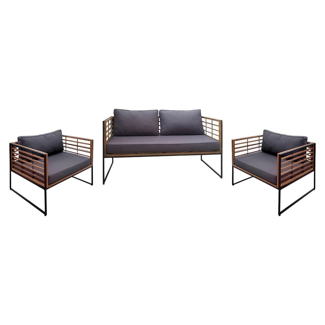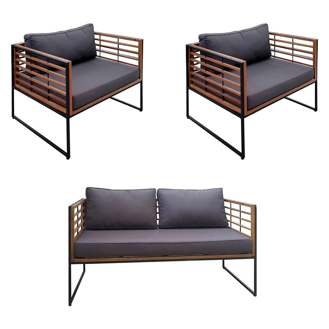Für stabilen Halt beim Sitzen sorgt das Gestell aus Stahl (beschichtet). Optisch begeistert das Gestell in der Farbe Schwarz. Der Bezug des Loungesets ist aus Polyester gefertigt. Für eine längere Haltbarkeit empfehlen wir bei stärkerem oder lang anhaltendem Regen, die abnehmbaren Kissen im Innenraum zu lagern. Die Farbe des Bezugs ist Anthrazit.
