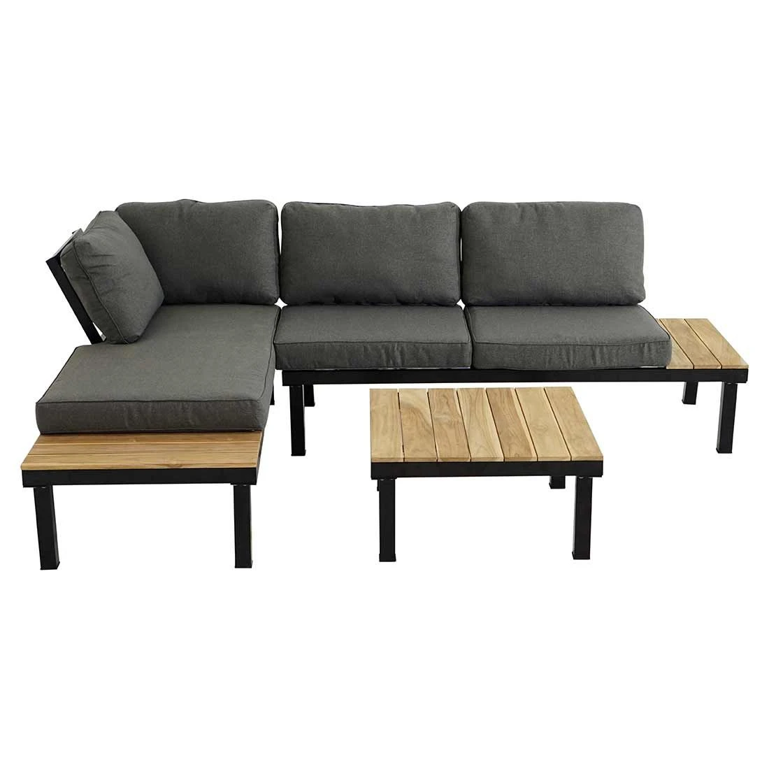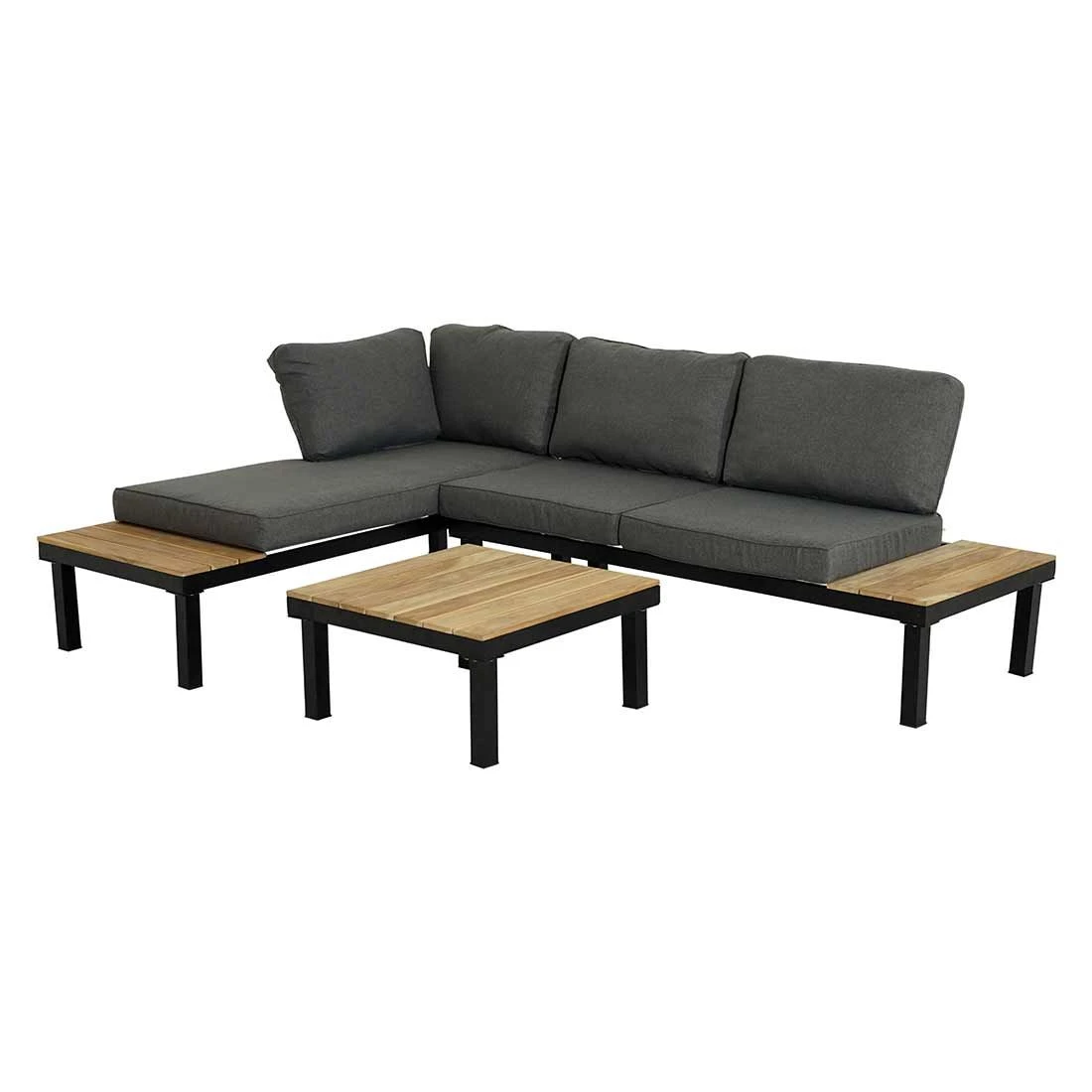 Für das Gestell und den Korpus kommt Aluminium zum Einsatz. Damit die Ecklounge optisch ansprechend ist, sind das Gestell und die Sitzfläche im Farbton Anthrazit gehalten. Die Sitzflächen werden aus Polyester gefertigt. Auch wenn diese Wind und Wetter trotzen, empfehlen wir die abnehmbaren Kissen bei länger andauernder Feuchtigkeit drinnen zu lagern. Die Tischplatte ist aus besonders schönem Akazienholz gefertigt und erzeugt dadurch ein Gefühl von Natürlichkeit. Passend zum Gesamtbild der Ecklounge begeistert die Tischplatte mit ihrer Farbgebung in Akazie Natur.