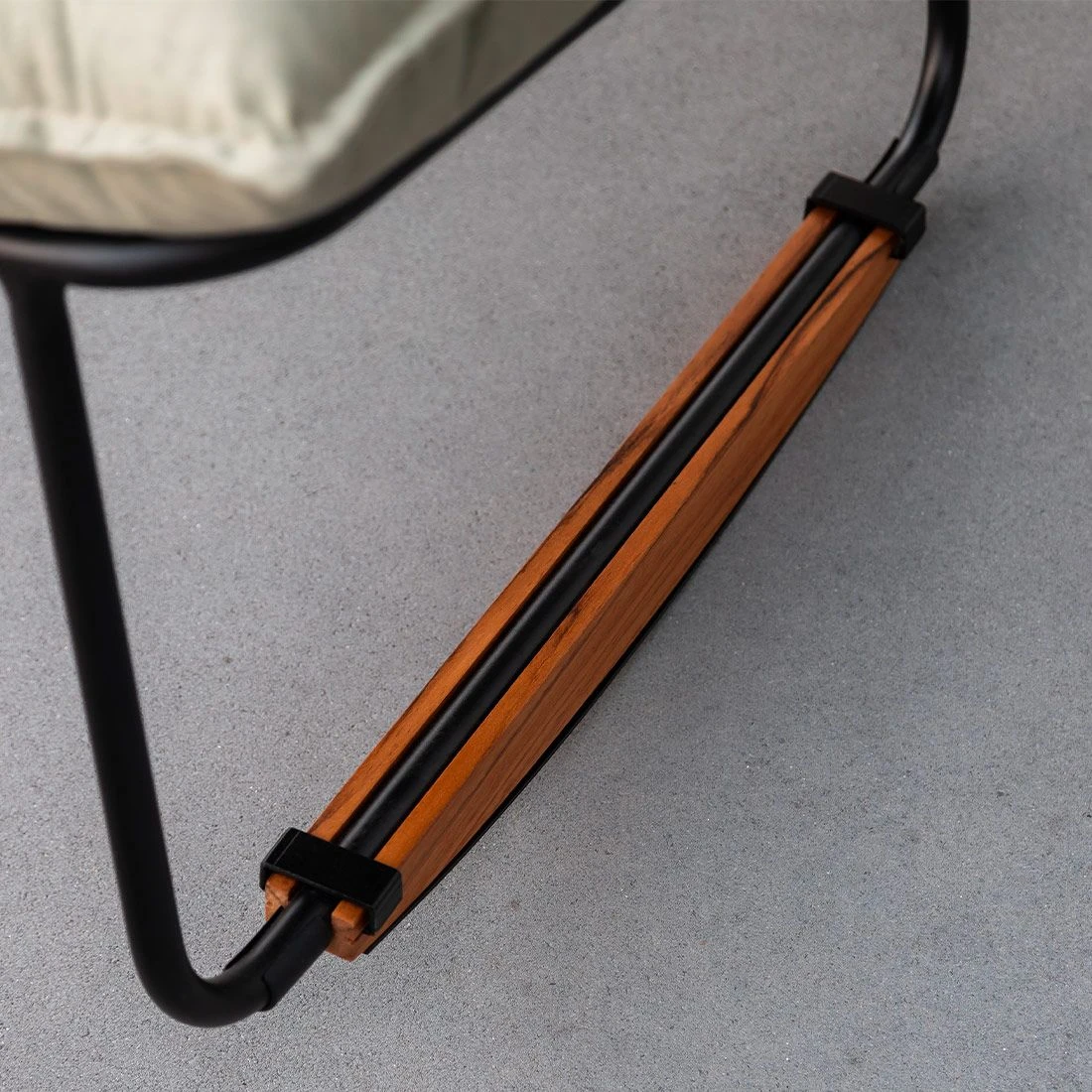 Für die Herstellung des Gestells wird hochwertiges und wetterfestes Aluminium verwendet. Farblich ist dieses in Schwarz gehalten. Als Bezug dient ein langlebiger Stoff namens Sunbrella. Dieses Material ist besonders widerstandsfähig gegen UV-Strahlung.