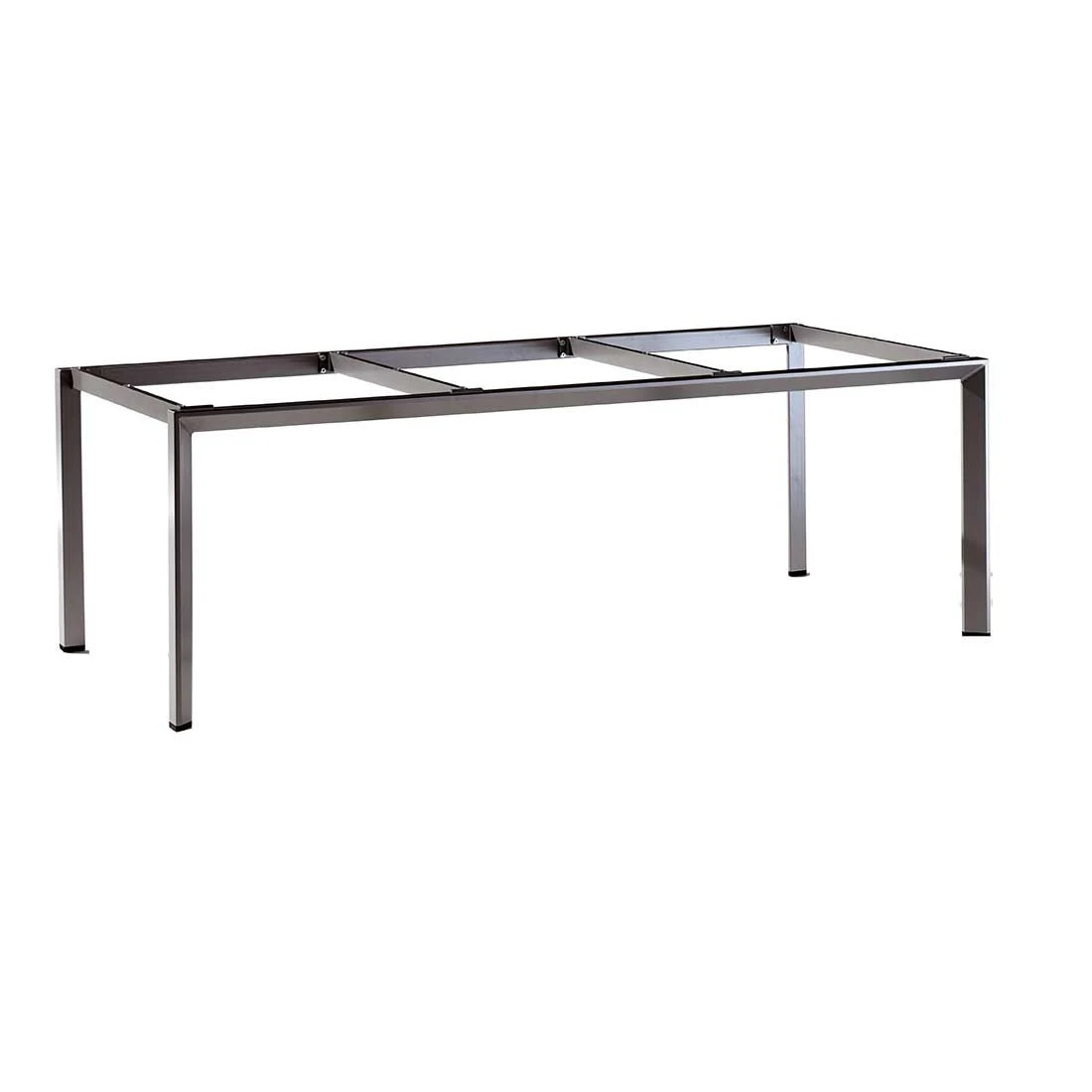 Als Gestellmaterial dient hochwertiges Aluminium. Das klassische Vierfuß-Gestell garantiert Ihnen maximale Beinfreiheit. Die rechteckige Form ermöglicht es Ihnen, das Tischgestell in Ecken und an Häuserwänden platzsparend einzusetzen. Mit den Maßen 220×100 cm ist das Tischgestell überaus großzügig gestaltet und wirkt wie eine wunderbare Festtafel. Sie laden gerne Freunde und Familie zum Essen ein? Dann ist dieses Modell einen zweiten Blick wert, denn hier finden bis zu 8 Personen bequem Platz.