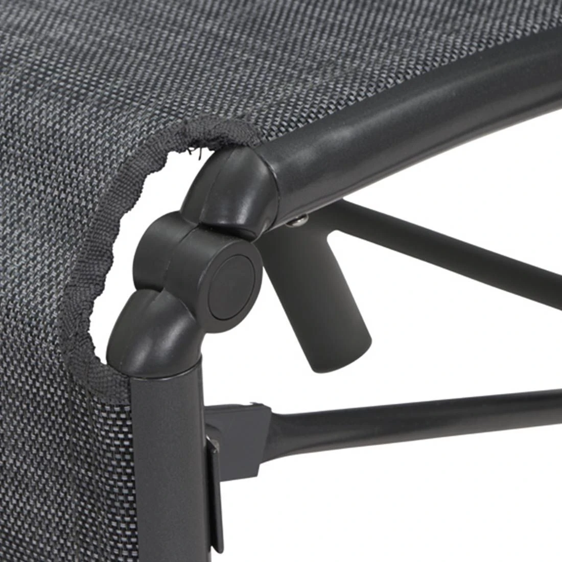 Für die Herstellung des Gestells wird hochwertiges und wetterfestes Aluminium verwendet. Farblich ist dieses in Anthrazit gehalten. Die Sitzfläche der Relaxliege wird mit Ranotex®-Gewebe bespannt. Für die Bespannung der Sitzfläche wird hochwertiges Ranotex®-Gewebe in der Farbe Silber-Schwarz verwendet. Es besteht aus PVC-ummantelten Polyesterfasern und zeichnet sich durch eine hohe UV-Beständigkeit und Luftdurchlässigkeit aus. Dadurch trocknet das Material sehr zügig. Dieses Modell ist so bequem, dass Sie keine zusätzliche Polsterauflage benötigen.