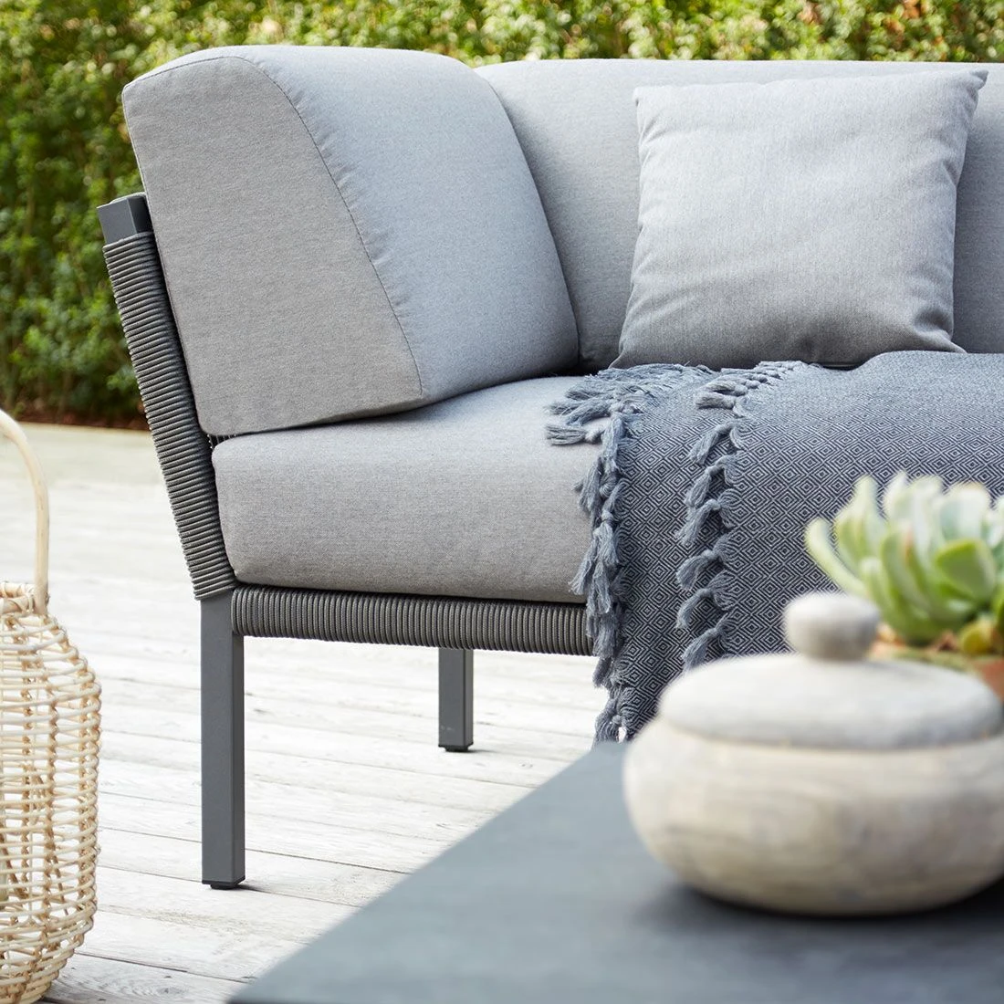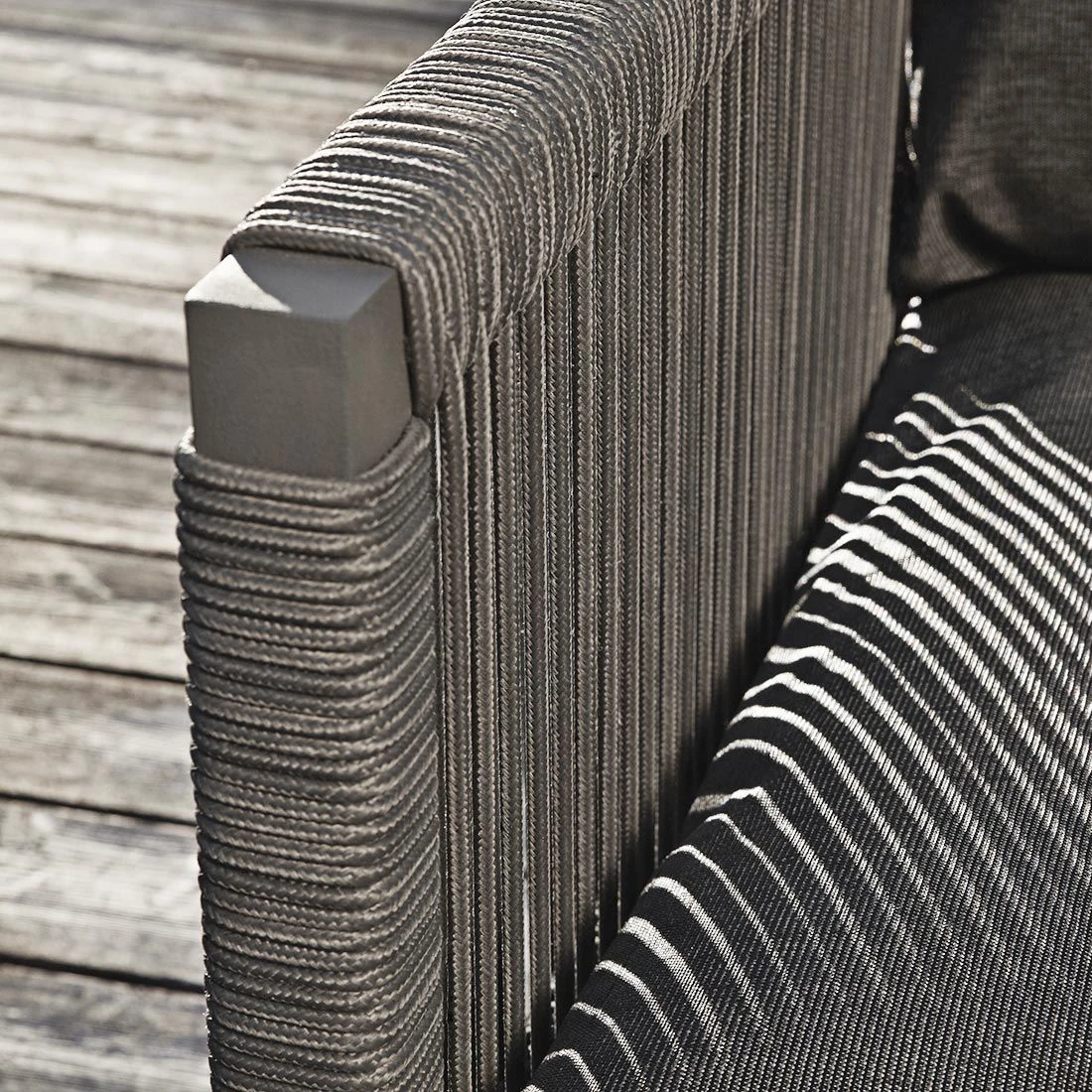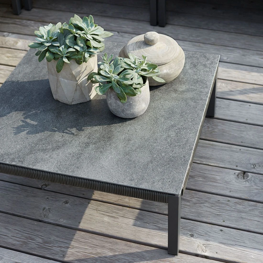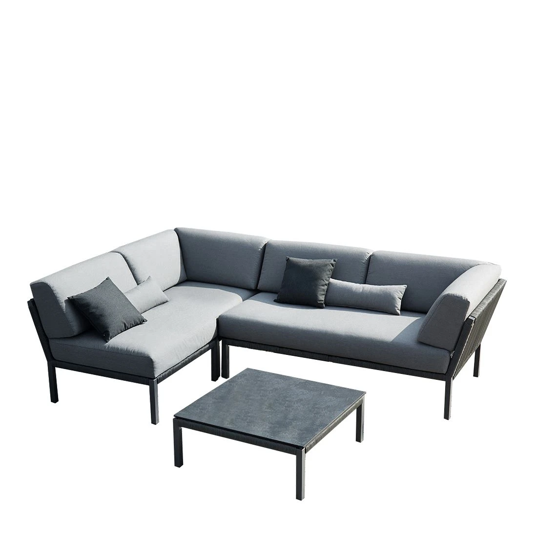 Damit das Loungeset optisch ansprechend ist, sind das Gestell und der Bezug im Farbton Anthrazit gehalten. Das Gestell besteht aus Aluminium. Für die Bespannung der Sitzfläche wird hochwertiges Rope verwendet. Es zeichnet sich durch eine hohe Robustheit. Der Bezug des Loungesets ist aus Acryl gefertigt. Dieses Material begeistert mit einer hohen Witterungsbeständigkeit. Regen kann dem robusten Outdoor-Stoff kaum etwas anhaben. Die schöne HPL-Tischplatte ist nicht nur ein optischer Hingucker, sondern besitzt zudem auch eine enorm widerstandsfähige und unbedingt kratzfeste Oberfläche, die unterschiedlichen Belastungen standhält. Passend zum Gesamtbild des Loungesets begeistert die Tischplatte mit ihrer Farbgebung in Volcano Grey.