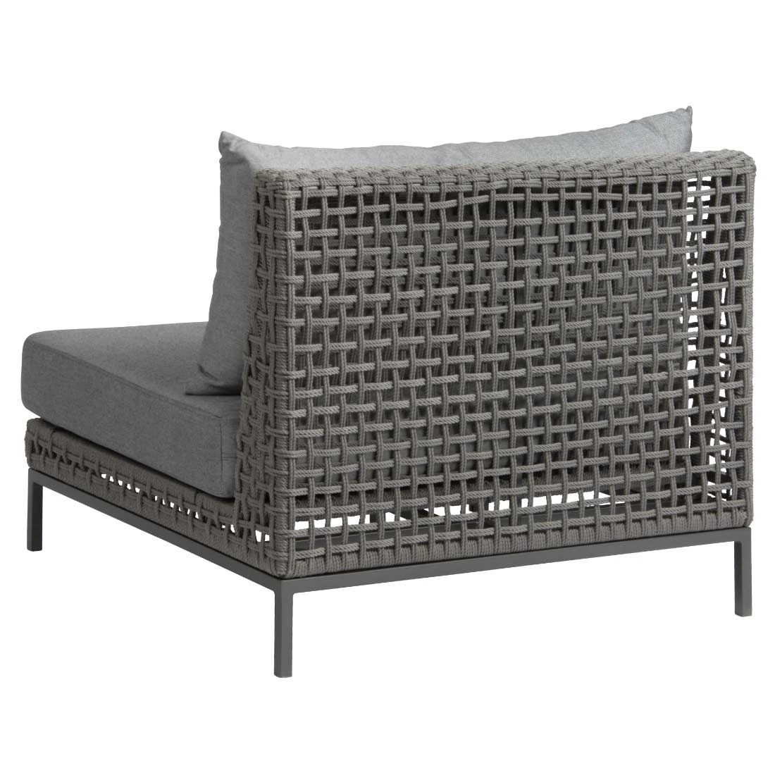 Das Gestell wird aus Aluminium in der Farbe Anthrazit gefertigt. Das geringe Eigengewicht des Materials macht das Mittelmodul zu einem robusten, aber dennoch leicht zu transportierenden Möbel auf Ihrer Terrasse. Das Gestell ist mit Rope umflochten und bringt somit ein gemütliches Flair auf Ihre Terrasse.