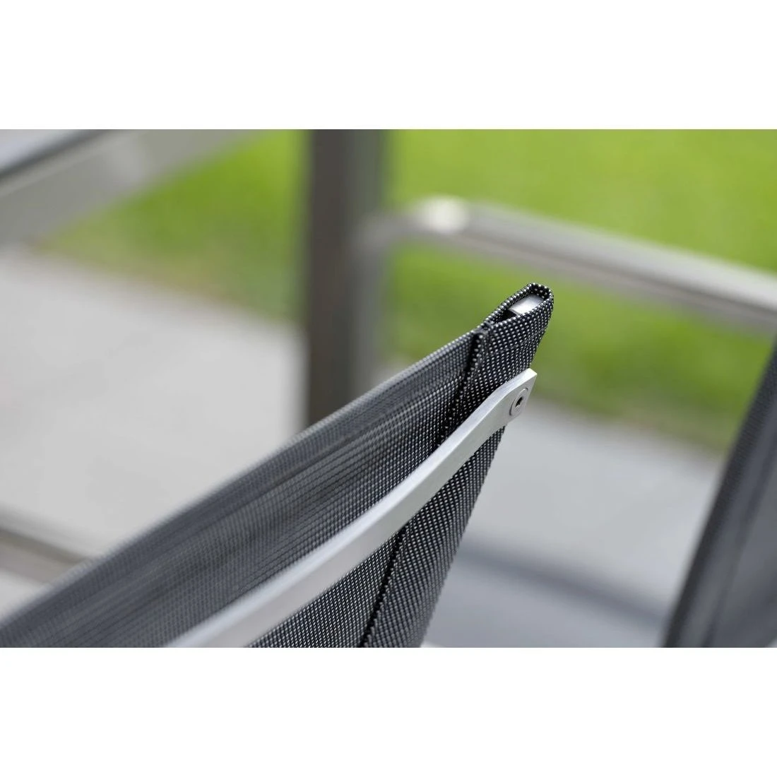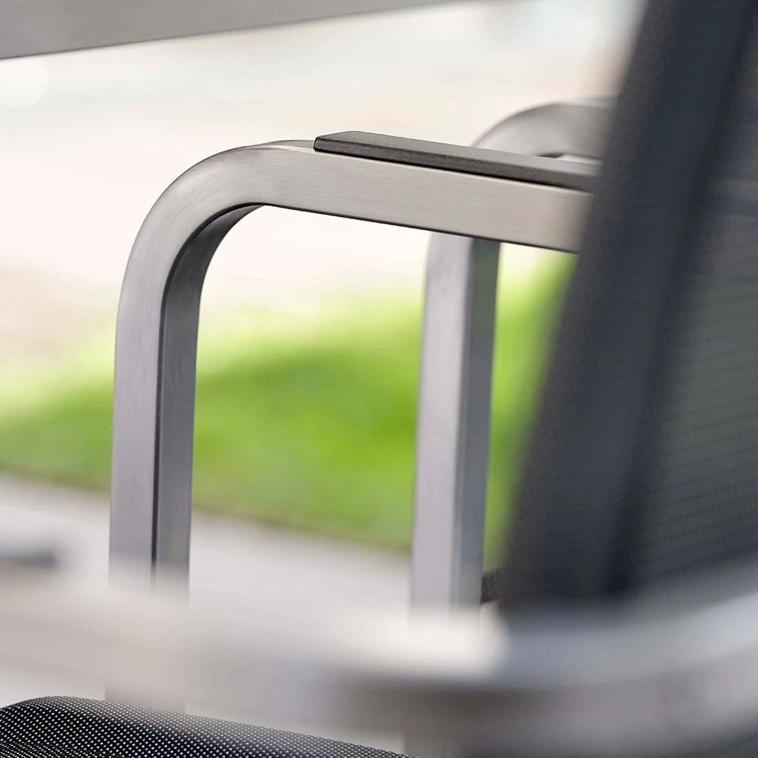 Ein weiteres Highlight des Freischwingers ist die Bespannung mit Textilene in der Farbe Silbergrau. Dieser Bezugsstoff überzeugt durch eine hohe Robustheit gegenüber Hitze und Frost aus und ist leicht zu reinigen. Die Sitzbreite von 44 cm und die Sitztiefe von 49 cm machen den Freischwinger besonders komfortabel. Die Sitzhöhe liegt zudem bei angenehmen 46 cm.
