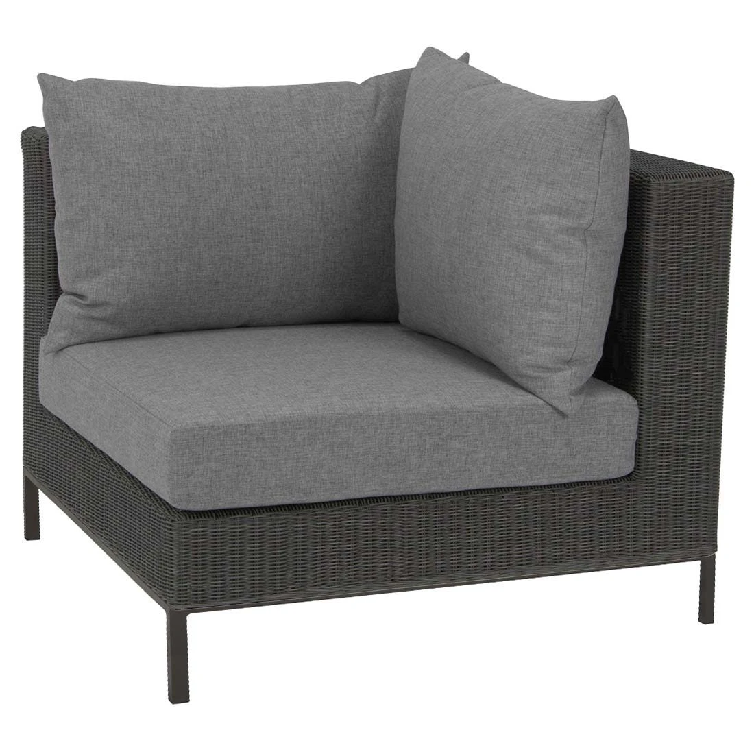 Der Korpus und die Sitzfläche sind aus Polyrattan-Geflecht gefertigt. Damit das Eck-/Endmodul optisch ansprechend ist, sind der Korpus und die Sitzfläche im Farbton Basaltgrau gehalten. Als Material des Gestells hat der Hersteller qualitativ hochwertiges Aluminium gewählt. Optisch begeistert das Gestell in der Farbe Anthrazit. Die Farbe des Bezugs ist Seidengrau.