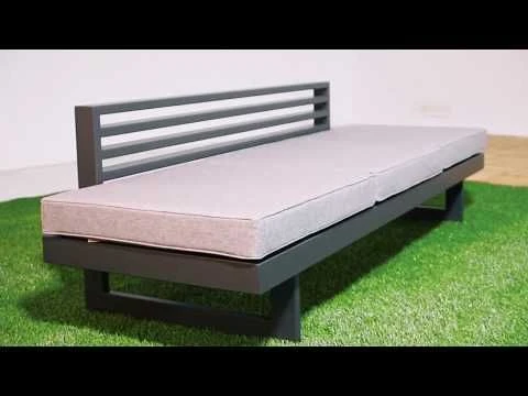 Als Material des Gestells hat der Hersteller wertiges Aluminium gewählt. Optisch begeistert das Gestell in der Farbe Anthrazit. Die Sitzfläche ist angenehm gepolstert. Der Bezug des Gartensofas ist aus Polyester gefertigt. Für eine längere Haltbarkeit empfehlen wir bei stärkerem oder lang anhaltendem Regen, die abnehmbaren Kissen im Innenraum zu lagern. Die Farbe des Bezugs ist Grau-Meliert.