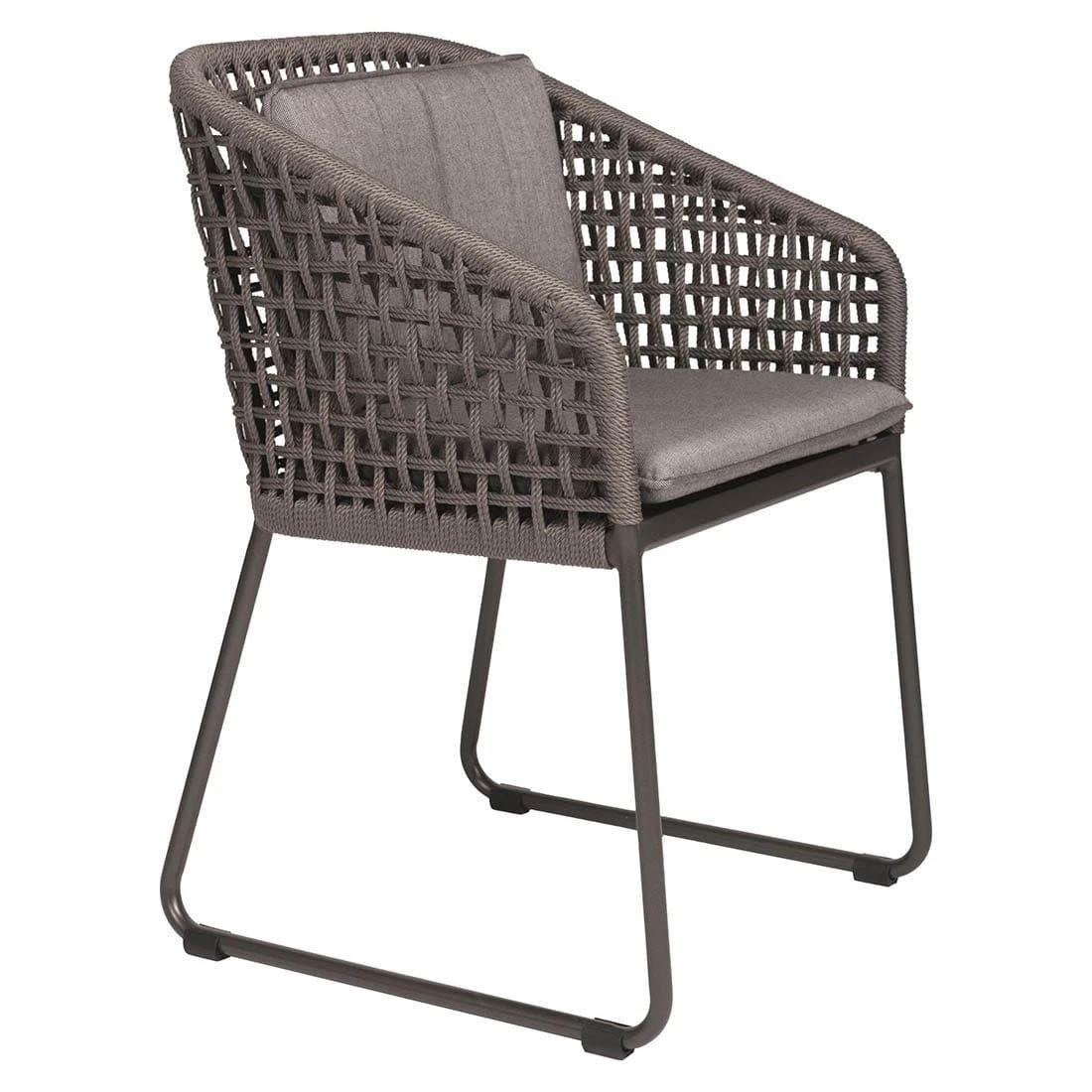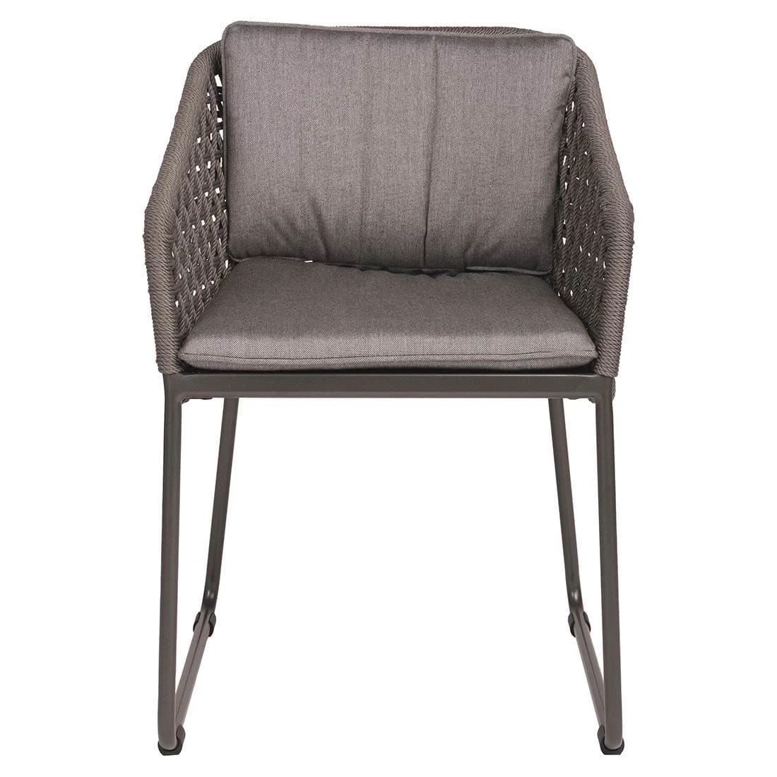 Der Korpus und die Sitzfläche bestehen aus Rope. Das Gestell wird aus Aluminium gefertigt. Das geringe Eigengewicht des Materials macht den Gartensessel zu einem robusten, aber dennoch leicht zu transportierenden Sitzmöbel auf Ihrer Terrasse. Für eine attraktive Optik ist das Gestell im Farbton Anthrazit gehalten. Der Bezug ist aus robustem Outdoorstoff gefertigt, der Wind und Wetter gut standhält. Bei langen Feuchtigkeitsperioden empfehlen wir dennoch, für eine längere Haltbarkeit, eine Lagerung im Inneren. Damit der Gartensessel optisch ansprechend ist, sind der Korpus und die Sitzfläche im Farbton Grau gehalten.