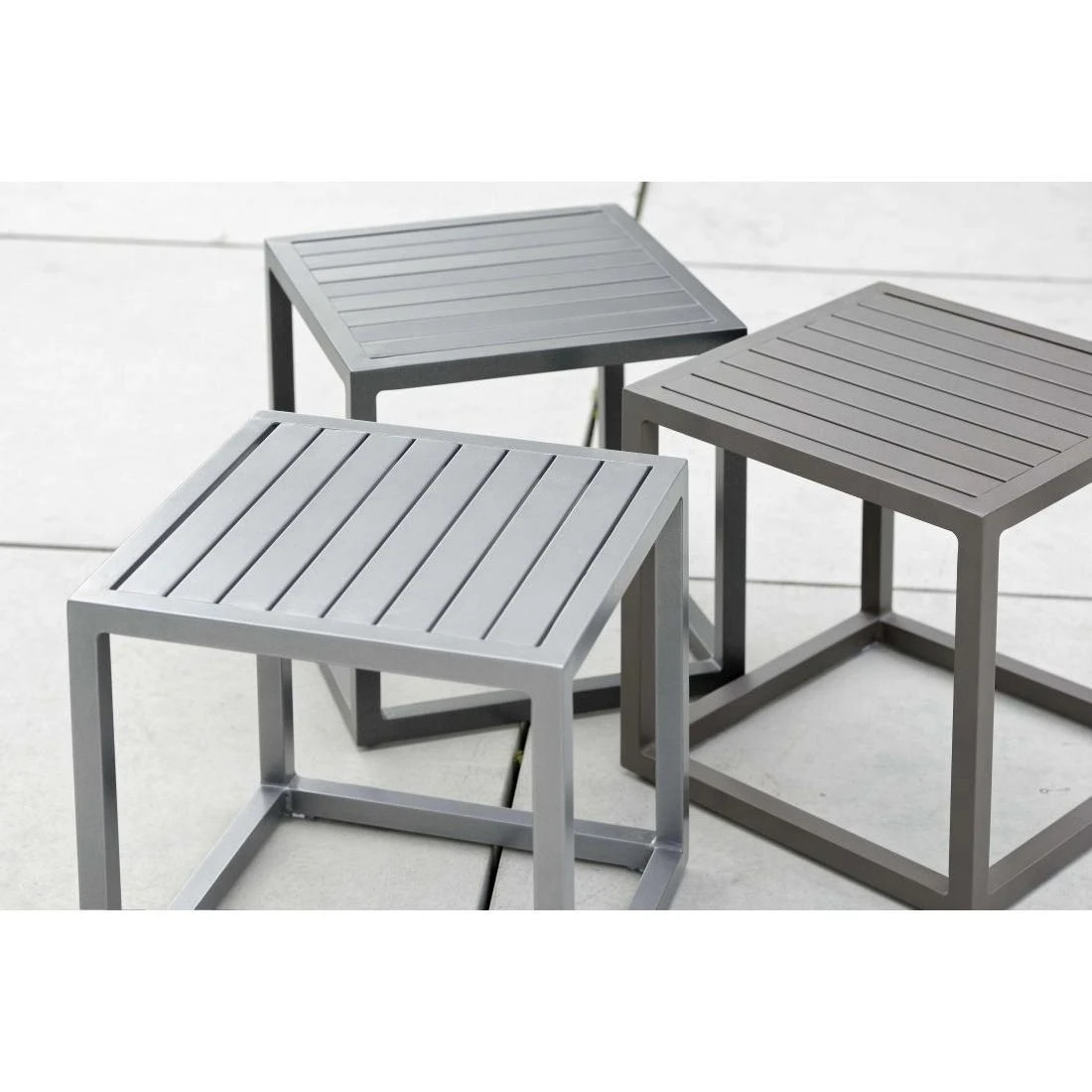Sowohl die Tischplatte als auch das Gestell sind aus Aluminium gefertigt. Farblich sind Gestell und Tischplatte einheitlich gestaltet und begeistern in Anthrazit. Das Tischgestell in Säulenform ist nicht nur ein wahrer Eyecatcher, sondern auch ein Garant für ausreichend große Beinfreiheit. Der Beistelltisch ist klassisch quadratisch gehalten.