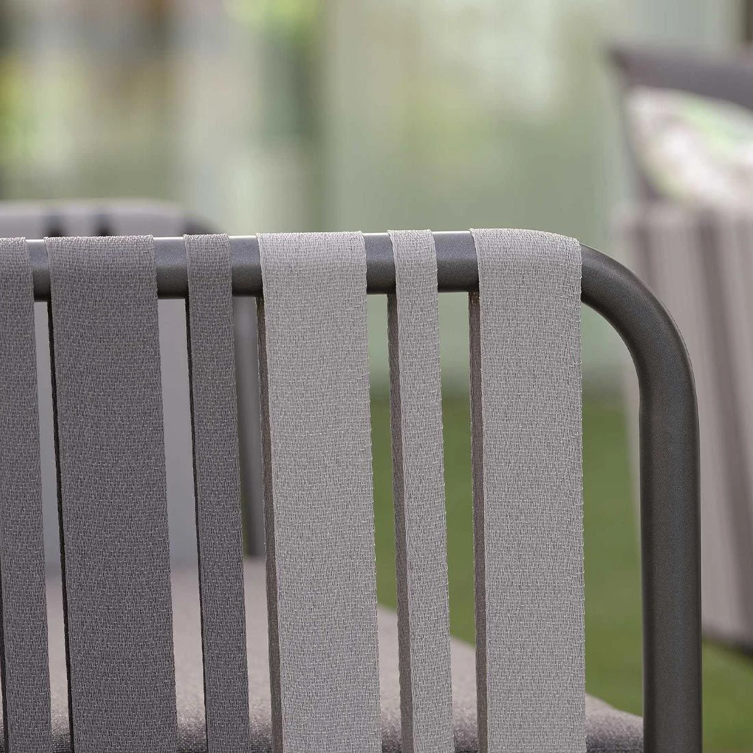 Das Gestell ist aus Aluminium gefertigt. Optisch begeistert das Gestell in der Farbe Anthrazit. Der Bezug ist aus robustem Outdoorstoff gefertigt, der Wind und Wetter gut standhält. Bei langen Feuchtigkeitsperioden empfehlen wir dennoch, für eine längere Haltbarkeit, eine Lagerung der abnehmbaren Kissen im Inneren. Die Farbe des Bezugs ist Seidengrau. Die massive Tischplatte aus pflegeleichtem HPL-Kunststoffverbund ist speziell für Veranstaltungen im Freien und Mahlzeiten draußen außergewöhnlich gut geeignet. Farblich überzeugt die Tischplatte in Vintage Grau.