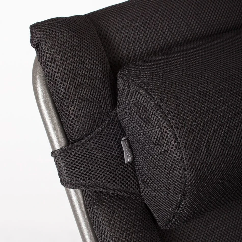 Das Gestell wird aus robustem Stahl gefertigt. Farblich ist dieses in Anthrazit gehalten. Die Farbgestaltung der Sitzfläche in Schwarz ist äußerst ansprechend. Für den Korpus und die Sitzfläche kommt Textilene zum Einsatz.
