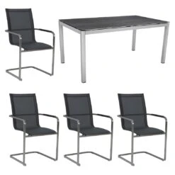 Siena Garden Solana Gartenmöbelset 5-tlg. Mit Tisch 160x90cm Anthrazit/Silber-Schwarz