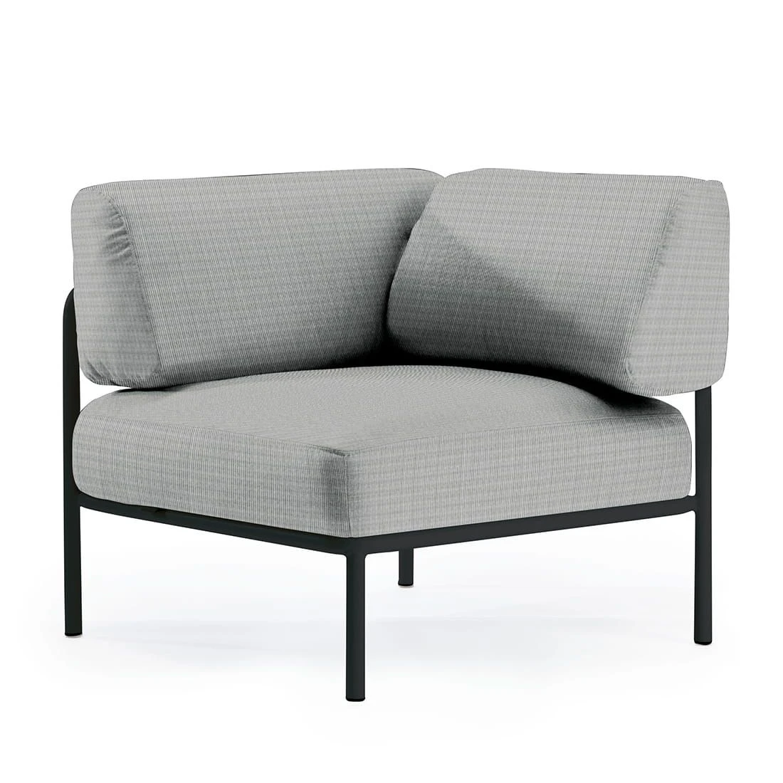 Als stabilen Unterbau wird ein Gestell aus robustem Stahl (beschichtet) gewählt. Optisch begeistert das Gestell in der Farbe Schwarz. Der Bezug des Eck-/Endmoduls ist aus Acryl gefertigt. Dieses Material begeistert mit einer hohen Witterungsbeständigkeit. Regen kann dem robusten Outdoor-Stoff kaum etwas anhaben. Die Farbe des Bezugs ist Hellgrau.
