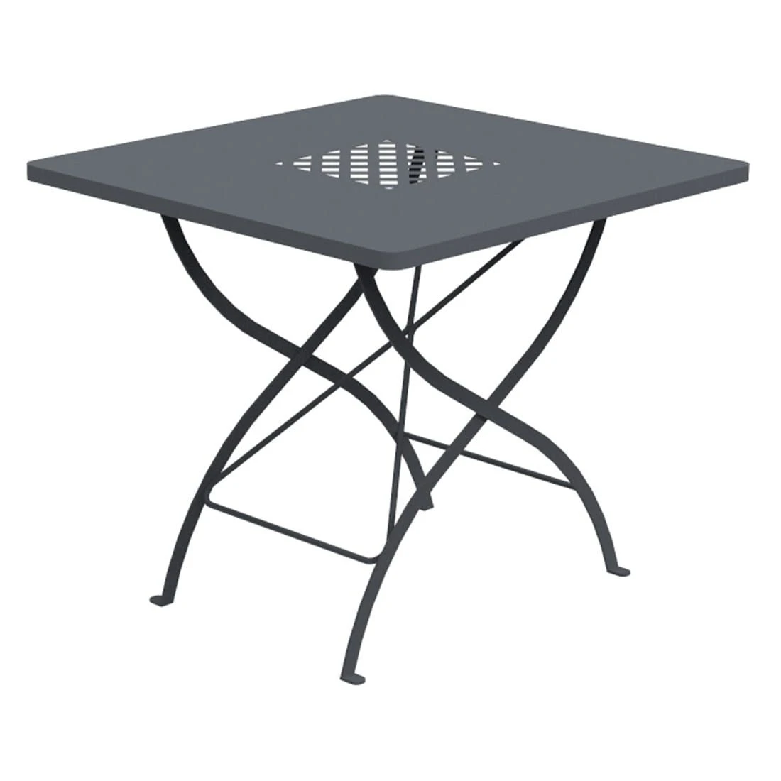 Als stabiler Unterbau für diese Platte dient ein Tischgestell aus hochwertigem Stahl. Die Tischplatte wird aus robustem Stahl gefertigt, der für eine bessere Haltbarkeit zusätzlich beschichtet wird. Farblich ist die Platte in Anthrazit gehalten.