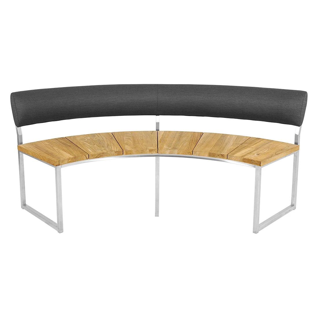 Das Gestell wird aus hochwertigem und rostfreiem Edelstahl hergestellt. Aufgrund des etwas höheren Eigengewichts, steht die Gartenbank dadurch besonders stabil und windsicher auf der Terrasse. Für eine attraktive Optik ist das Gestell im Farbton Silber gehalten. Als robustes und gleichzeitig äußerst natürliches Material für die Sitzfläche hat sich der Hersteller für Teakholz entschieden. Die Sitzfläche ist in ansprechendem Teak gehalten. Farblich begeistert der Bezug in elegantem Turmalin Grey.